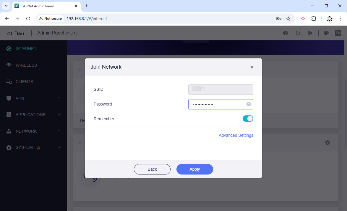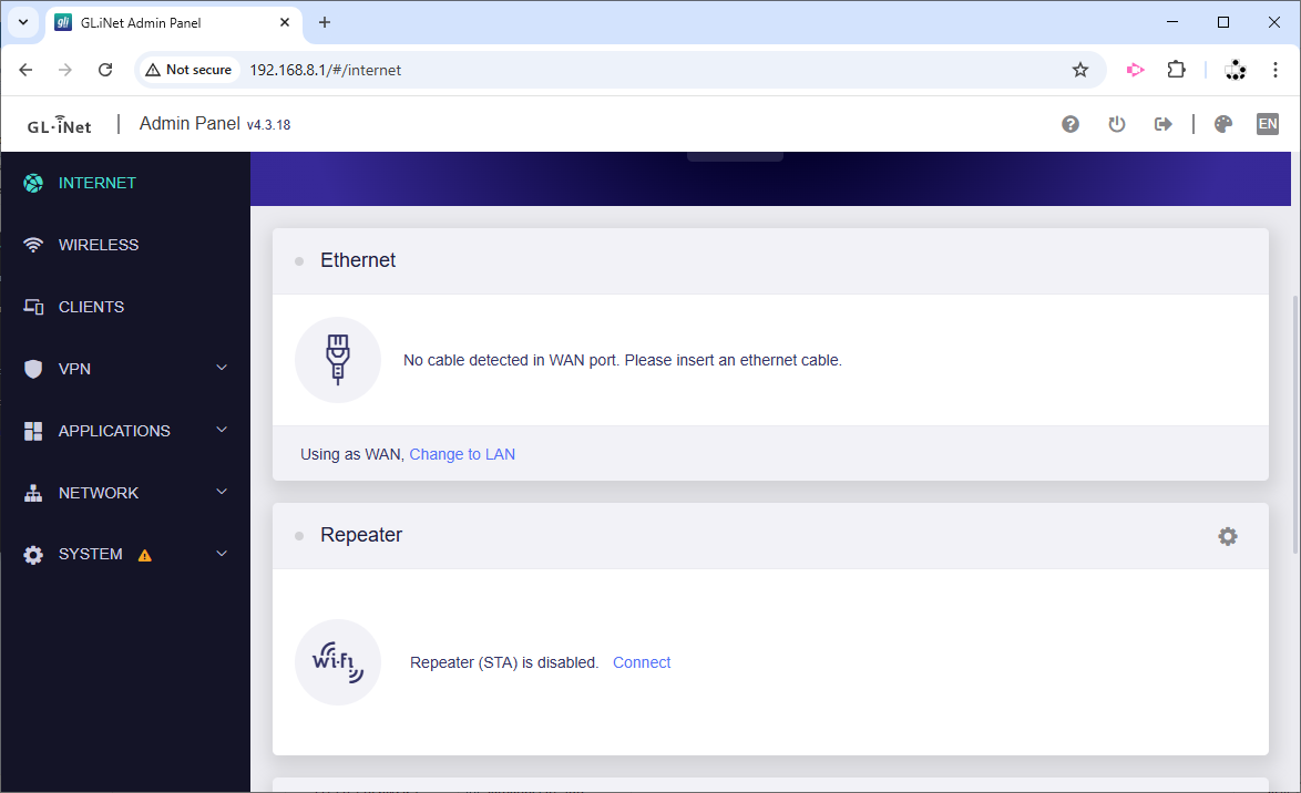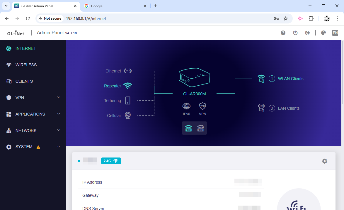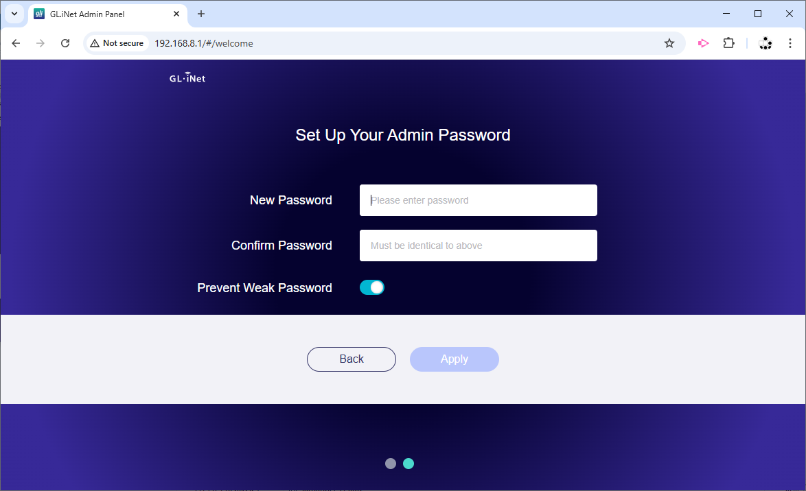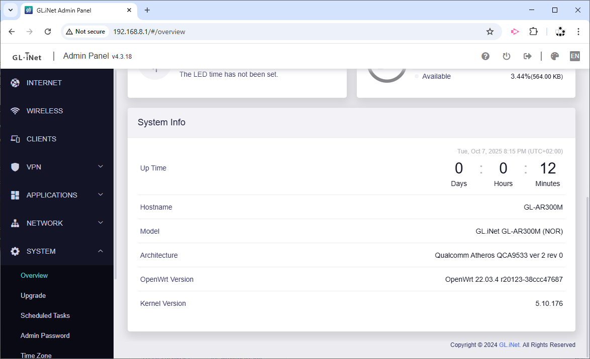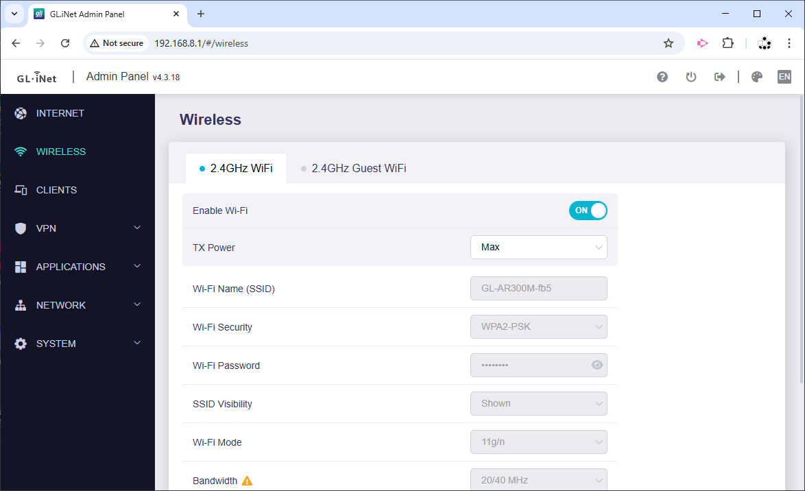 En connectarem a eixa Wifi amb la password inicial goodlife. I automàticament ja podrem accedir a la pàgina de configuració del mini router GL .iNet GL-AR300 escribit al navegador: