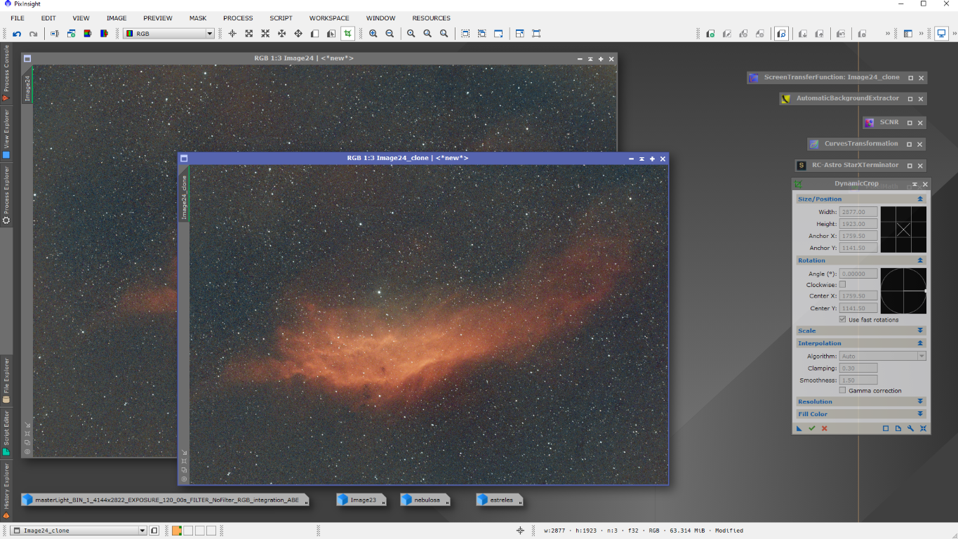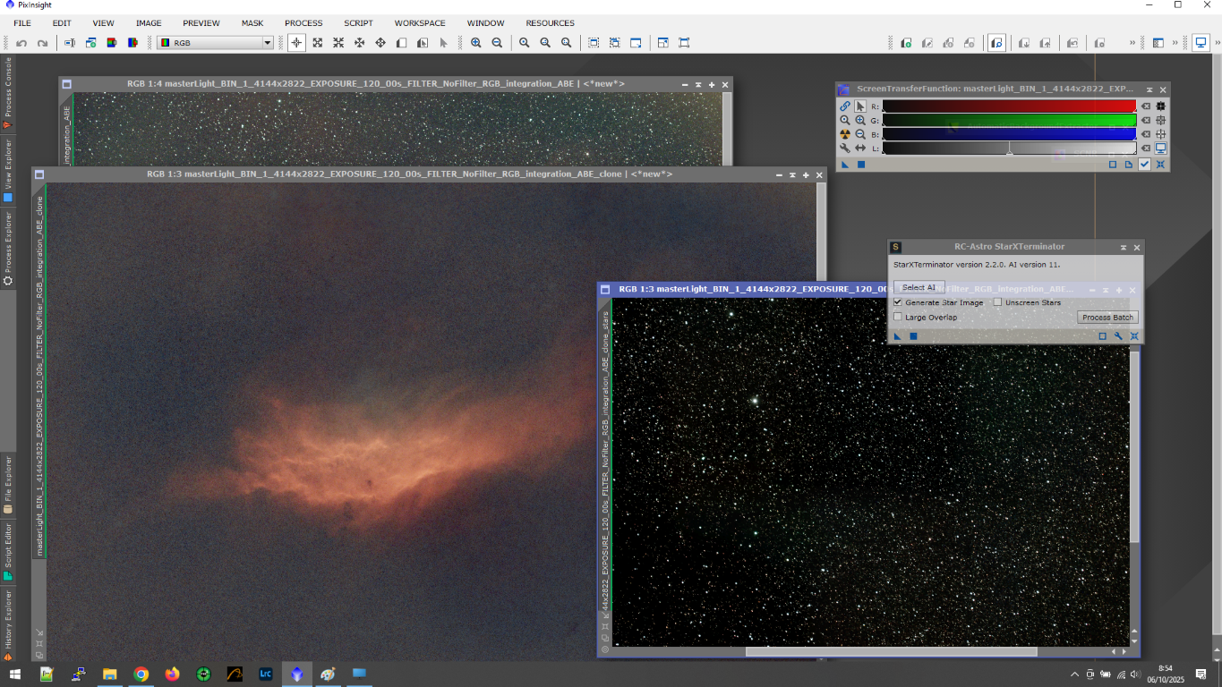 I bé, com és costum en els meus últims processaments, vaig a separar les estreles de la nebulosa, ara ho faig amb StarXterminator i abans ho feia amb StarNet 2, amb les dues ferramentes funciona de meravella: