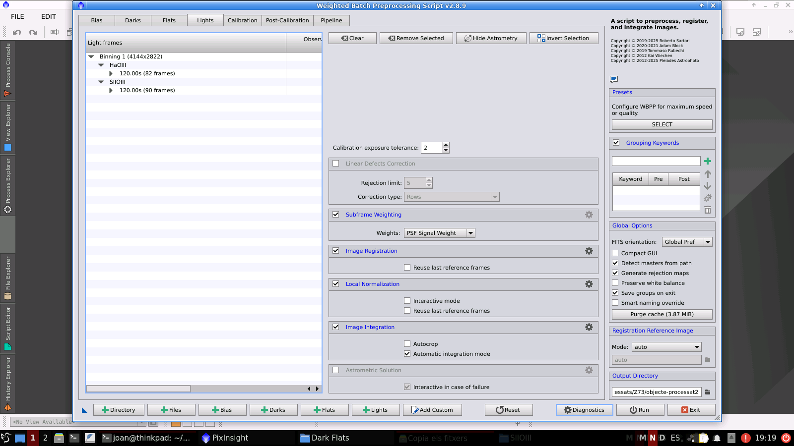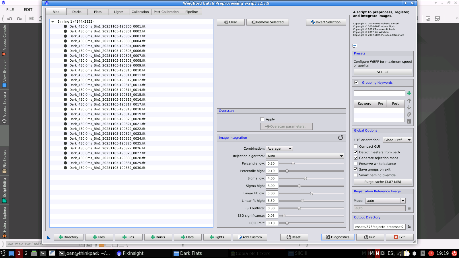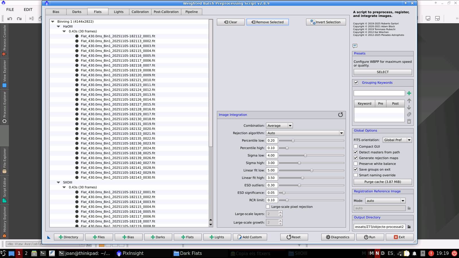 I bé, aquesta és la pestanya de calibratge de WBPP. Pots veure que m'ho ha agafat tot perfectament i sap com fer el calibratge amb els diferents Lights i Flats: