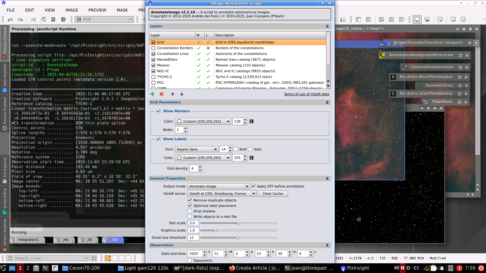 I a continuació també vaig a un script que m'agrada molt i que acostume a llançar al final dels meus processats, l'script AnnotateImage perquè indique els objectes i noms de nebuloses que trobe en eixa imatge: