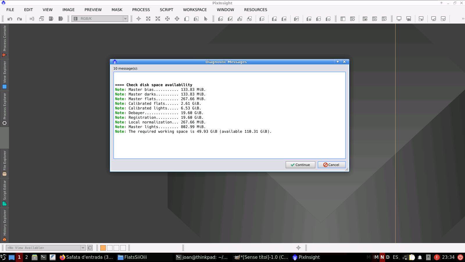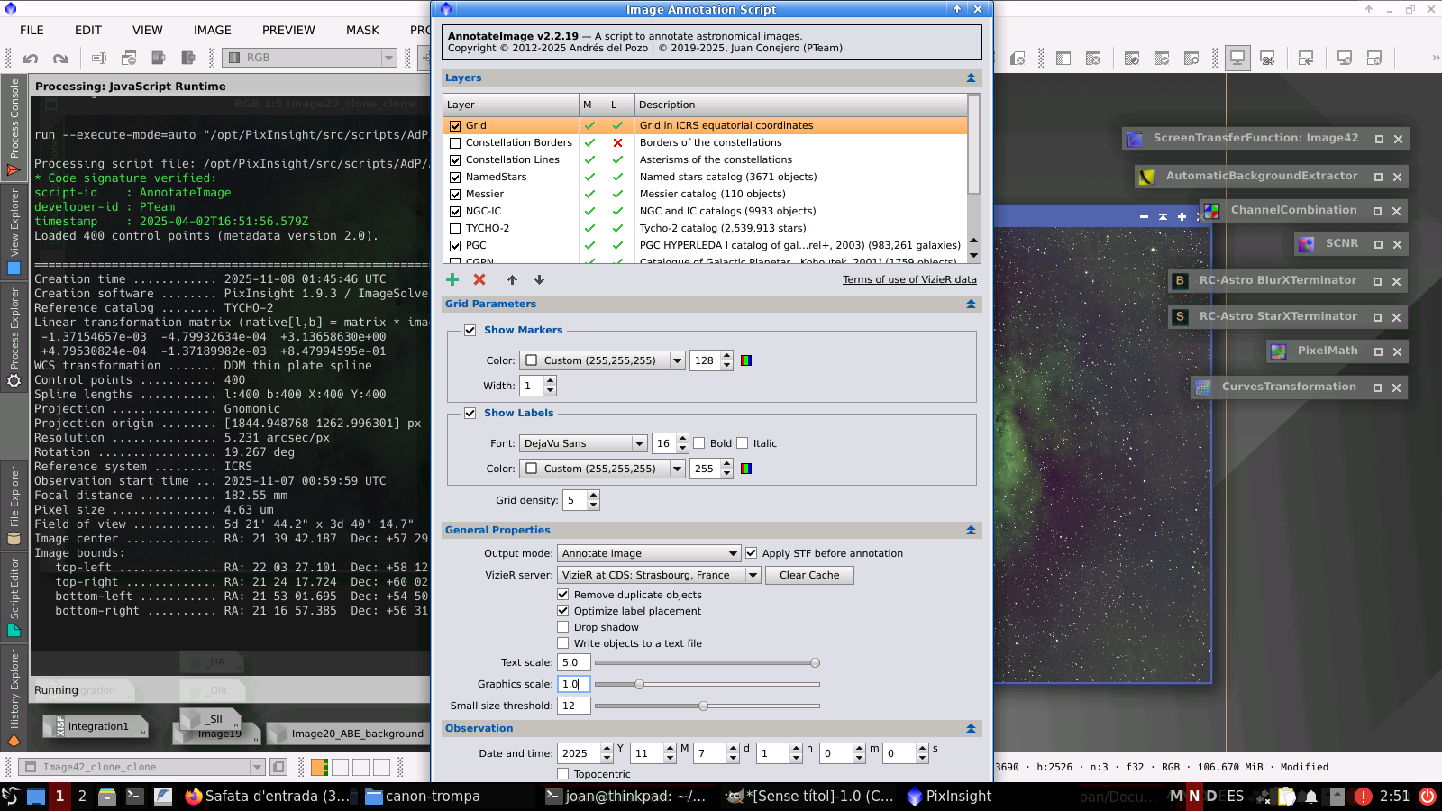 Ara vaig a fer la resolució de plaques amb l'script d'astrometria ImageSolver. Quan executem WBPP, normalment fa la resolució de plaques, però a mi m'agrada també passar-li ImageSolver perquè alguna vegada falla perquè al retallar la imatge o separar les estreles i fer una reducció, es perd la resolució de plaques.