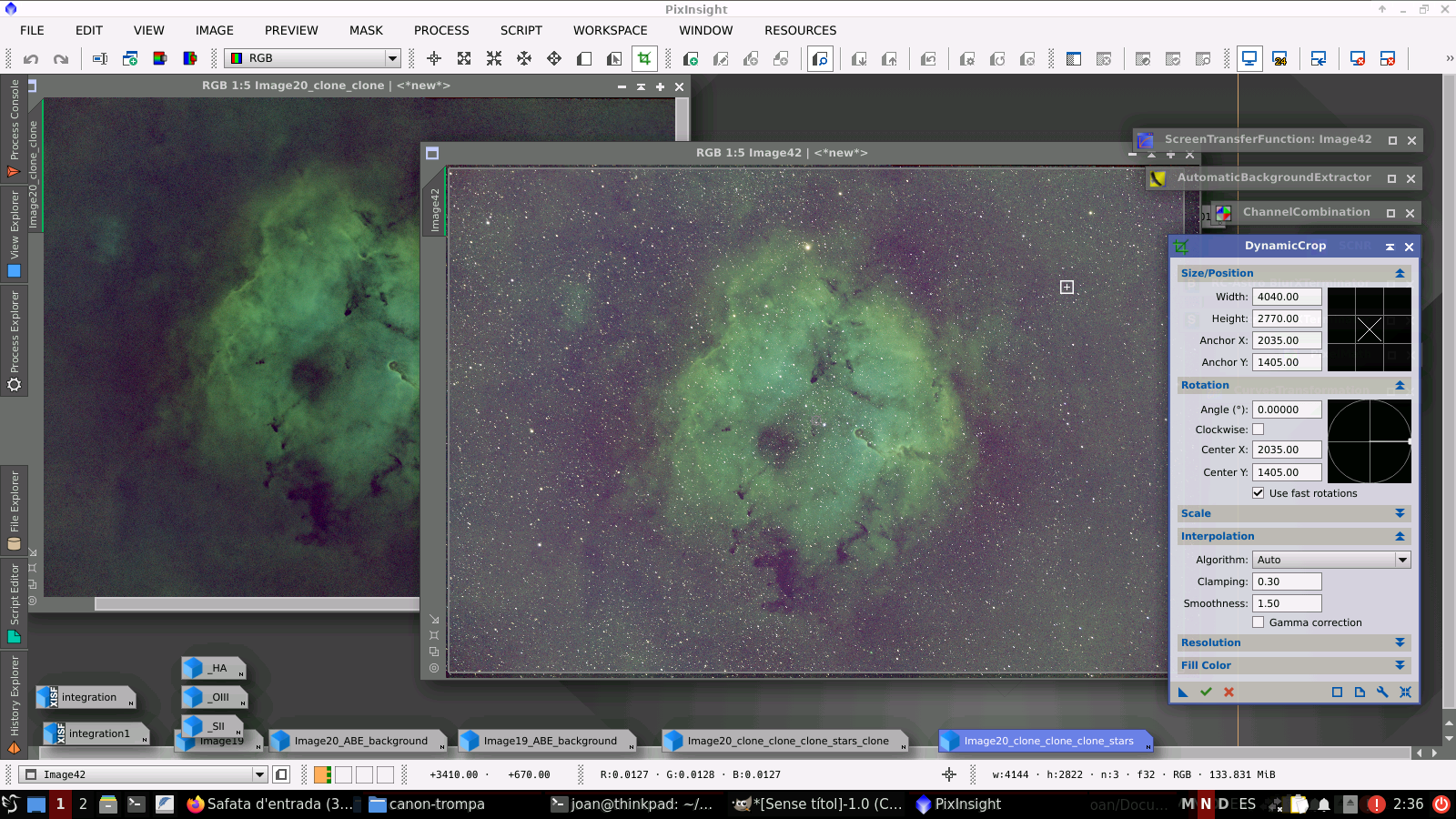 I bé, una vegada ja tinc la combinació de nebulosa i estreles, vaig a retallar un poc la imatge. Això ho faig amb el procés DynamicCrop: