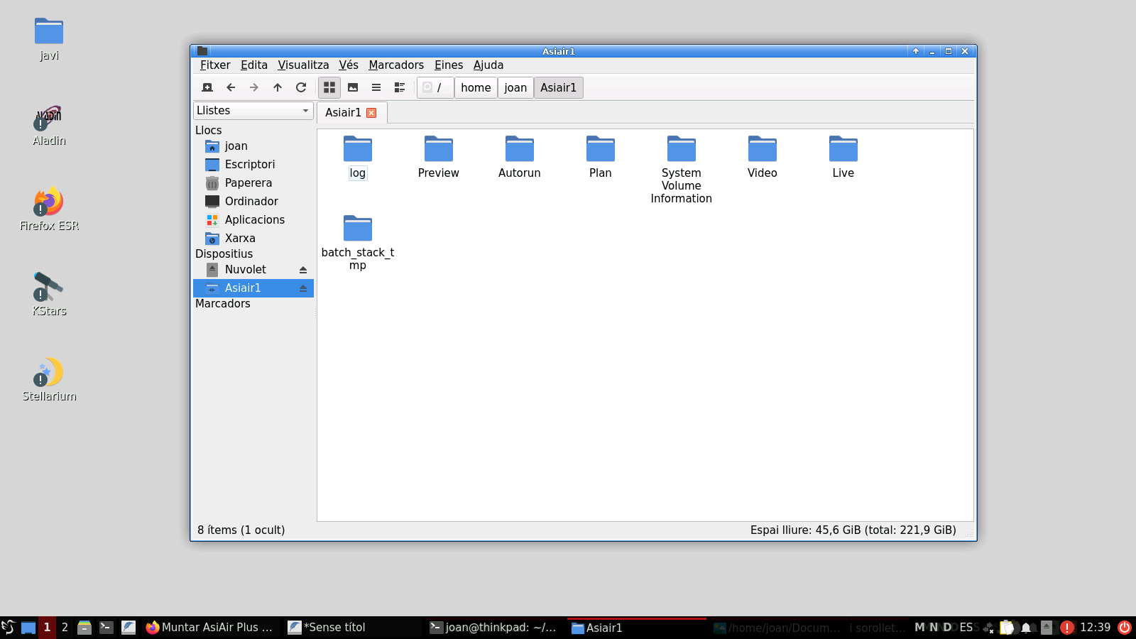 Ara podem accedir a la unitat des de l'ordinador i estarem veient les carpetes que hi ha a l'AsiAir que tenim al telescopi del terrat: