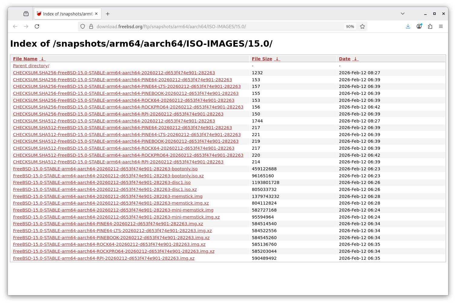 Començarem descarregant la última Release de FreeBSD 15 per a arm6 des el repositori oficial del projecte. No descarregarem cap snapshot sinó a una release oficial.