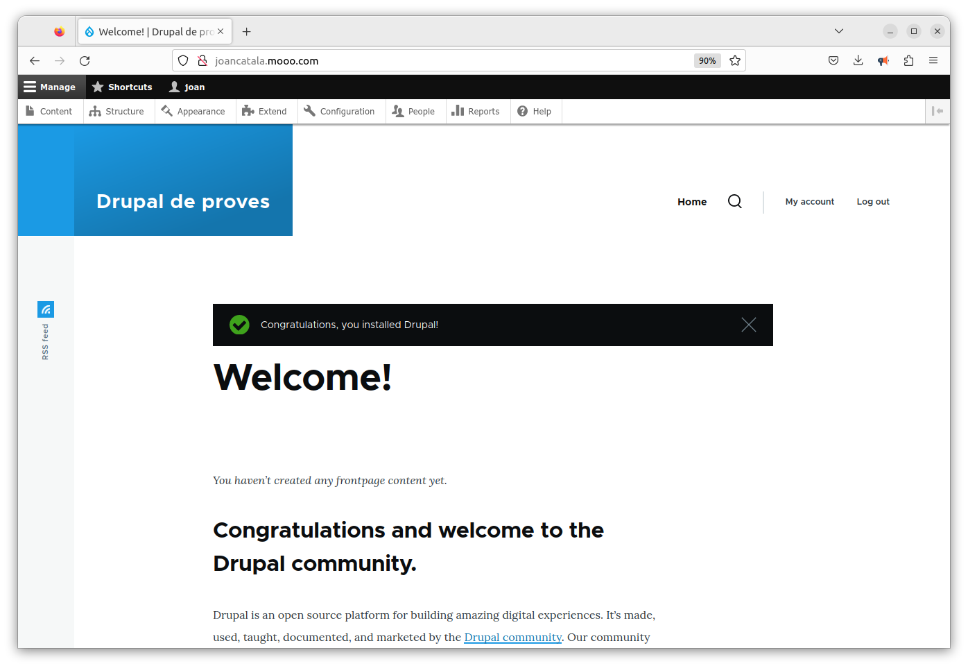 I ja tenim Drupal instal·lat i funcionant a la nostra Raspberry Pi 4 amb FreeBSD 13.2. Amunt FreeBSD! Amunt Drupal!