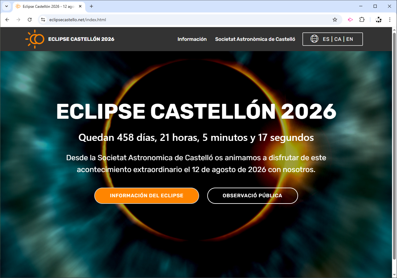Estic fent preparant una web estàtica de la Societat Astronòmica de Castelló de presentació de l'eclipsi que tindrà lloc a Castelló el pròxim any 2026, i com que he ficat un títol molt gran, des de Telegram el títol es visualitza mal perquè no cap entre la capçalera (o header) i la resta de text de presentació: