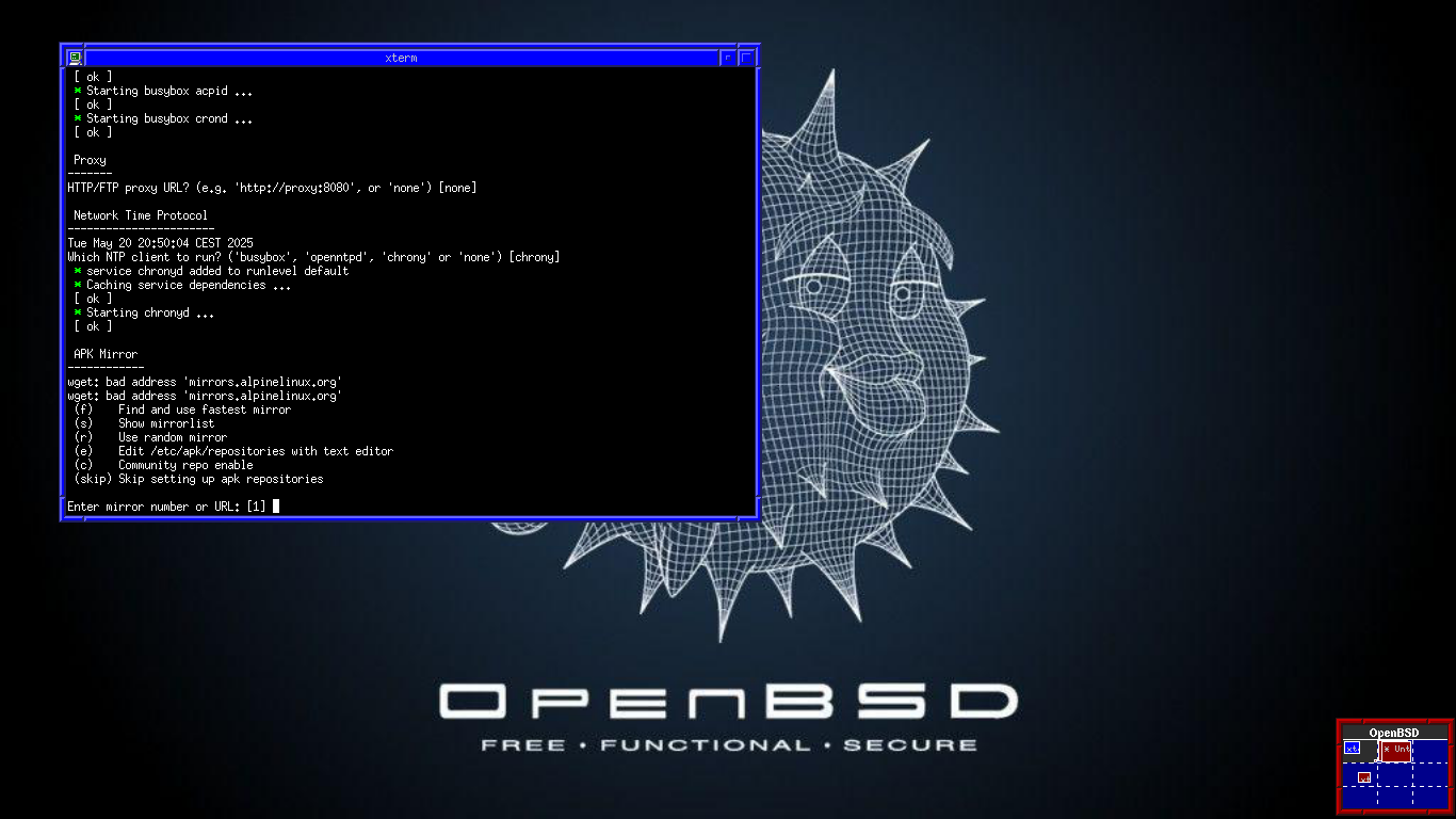 En aquest xicotet article explique, pas a pas, com he instal·lat un Alpine linux virtualitzat a OpenBSD amb vmd. Més endavant aniré explicant les possibilitats que podem aconseguir.