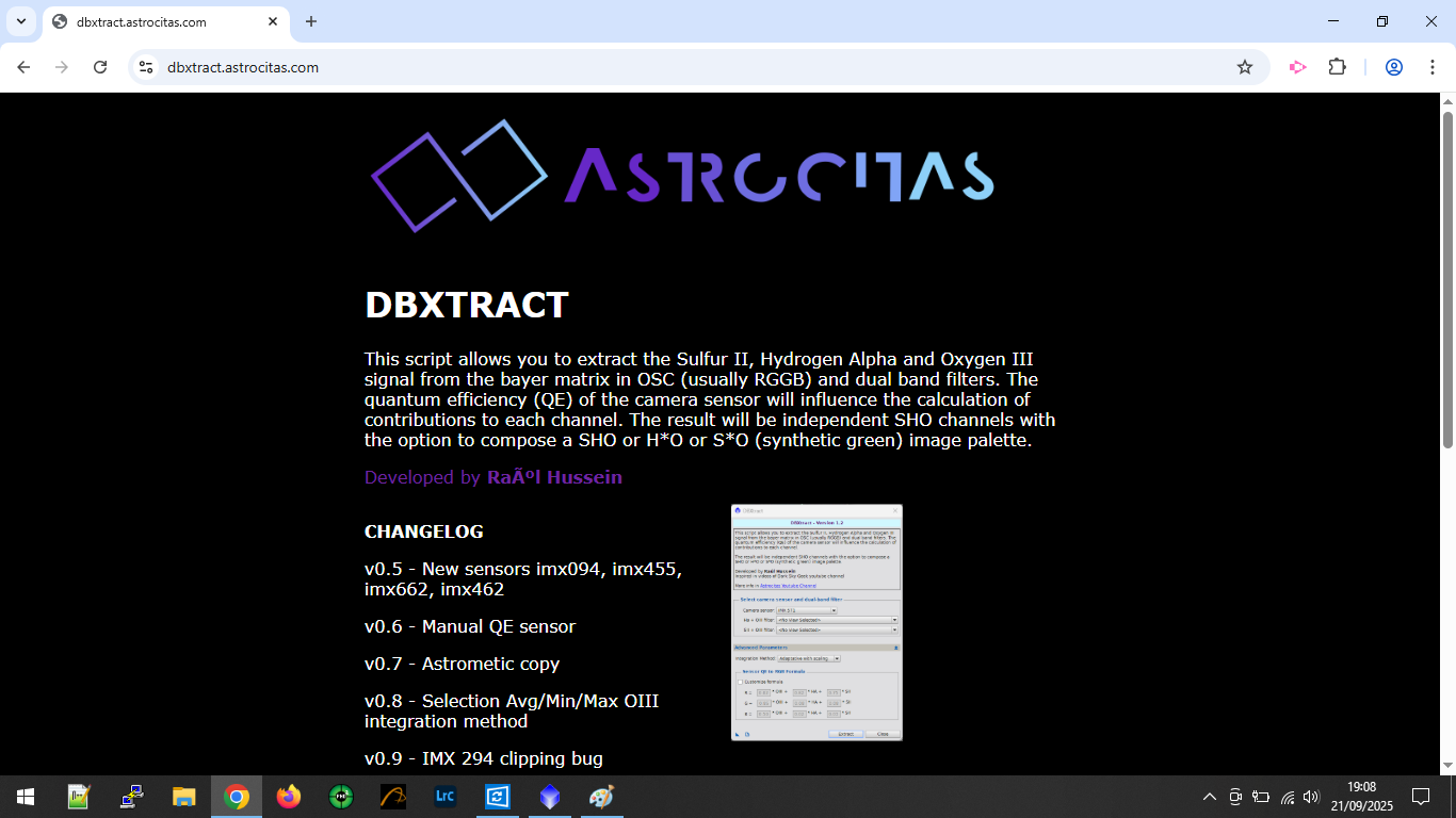 Aquest script ha segut desenvolupat per Raúl Hussein del ITI (Instituto Tecnológico de Informática) i del canal de videopodcasts Astrocitas i m'ho va recomanar Ferran Bosch, soci de la Societat Astronòmica de Castelló, perquè m'aniria bé per als meus processats que vull fer en banda estreta amb filtres multibanda Ha-OIII i SII+OIII i càmera a color.