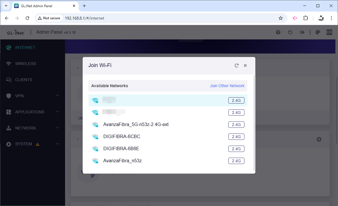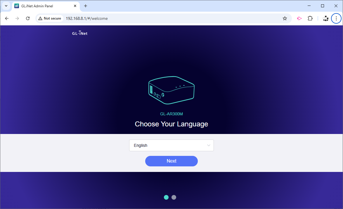 En connectarem a eixa Wifi amb la password inicial goodlife. I automàticament ja podrem accedir a la pàgina de configuració del mini router GL .iNet GL-AR300 escribit al navegador: