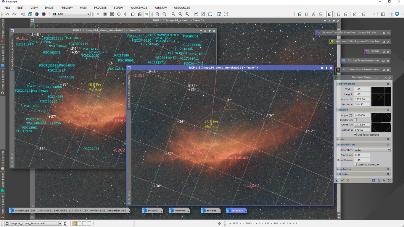 I bé, jo he fet dues proves, una amb la biblioteca NGC-IC i l'altra sense, per a provar. M'agrada també mirar les galàxies que aparèixen al camp de visió de la imatge i dotorejar un poc: