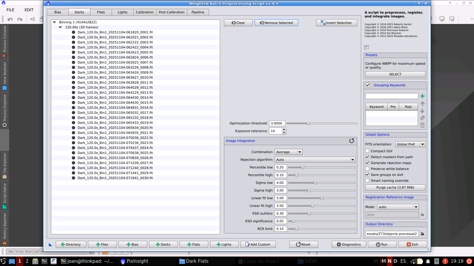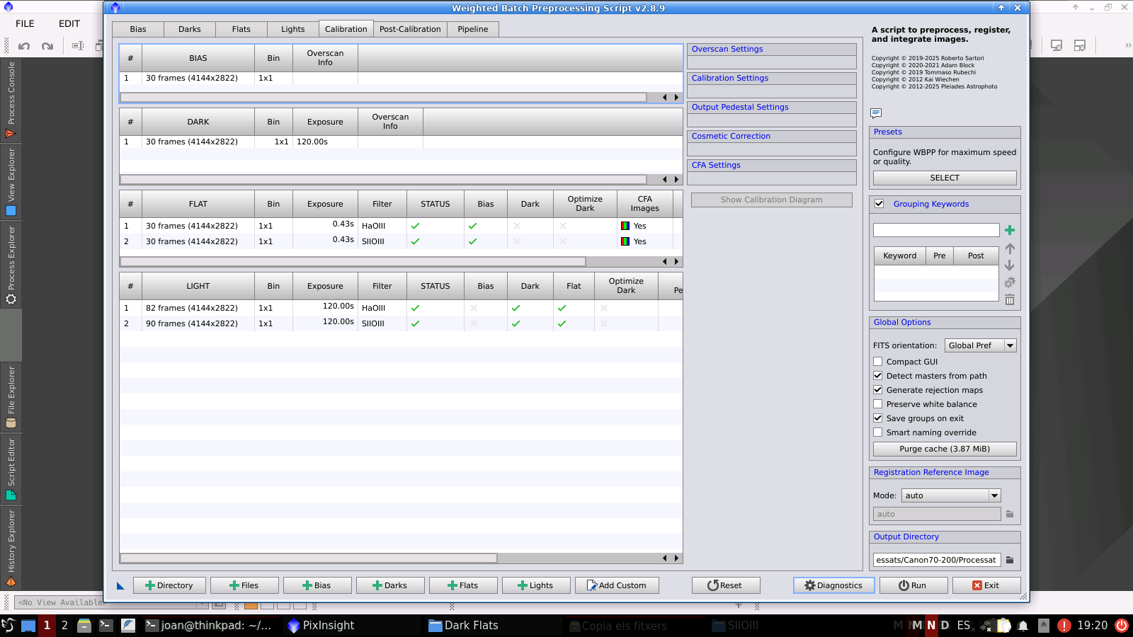 I bé, aquesta és la pestanya de calibratge de WBPP. Pots veure que m'ho ha agafat tot perfectament i sap com fer el calibratge amb els diferents Lights i Flats: