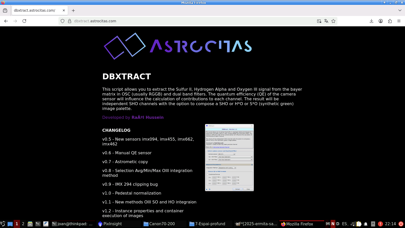 Ara anem a instal·lar un script nou, el DBXtract, desenvolupat per Raul Hussein (AVA, Astrocitas), aleshores anirem a la seua web https://dbxtract.astrocitas.com per a informar-nos un poc: