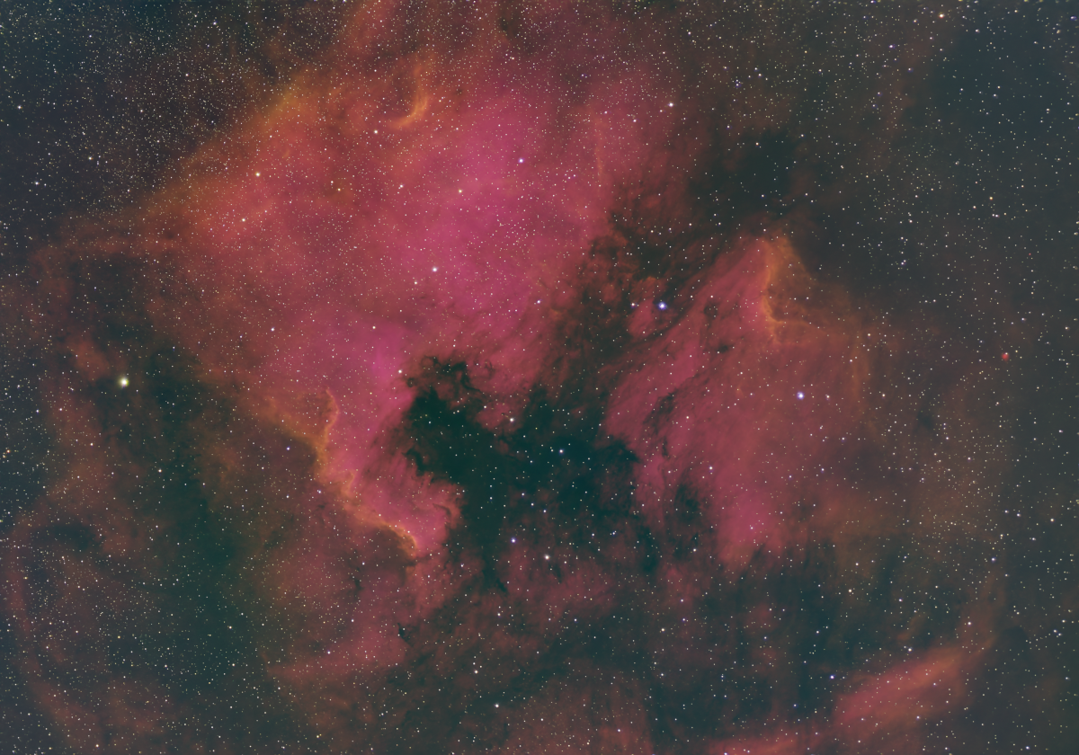 Doncs ací tenim la nebulosa NGC7000 (Nord Amèrica) i el Pelicà (IC 5067), dues nebuloses d'emissió en la constel·lació del Cigne, situades a prop de l'estrela Deneb: