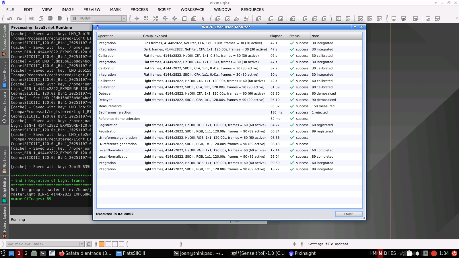 Ací et mostre la captura de pantalla dels Darks, els 150 Lights (60 pel filtre D1 i 90 pel filtre D2), els Flats i, encara que estiga en la pestanya dels Bias, són Dark Flats amb el mateix temps d'exposició que els Flats i la mateixa temperatura que els Lights: