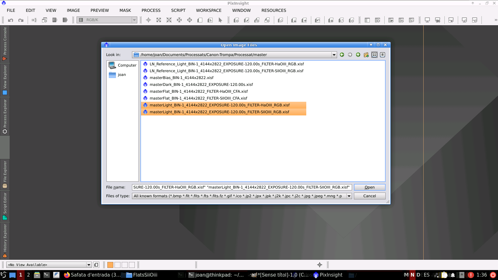 I ja tenia els dos masterLights, un per cada un dels filtres D1 Ha/OIII i D2 SII/OIII: