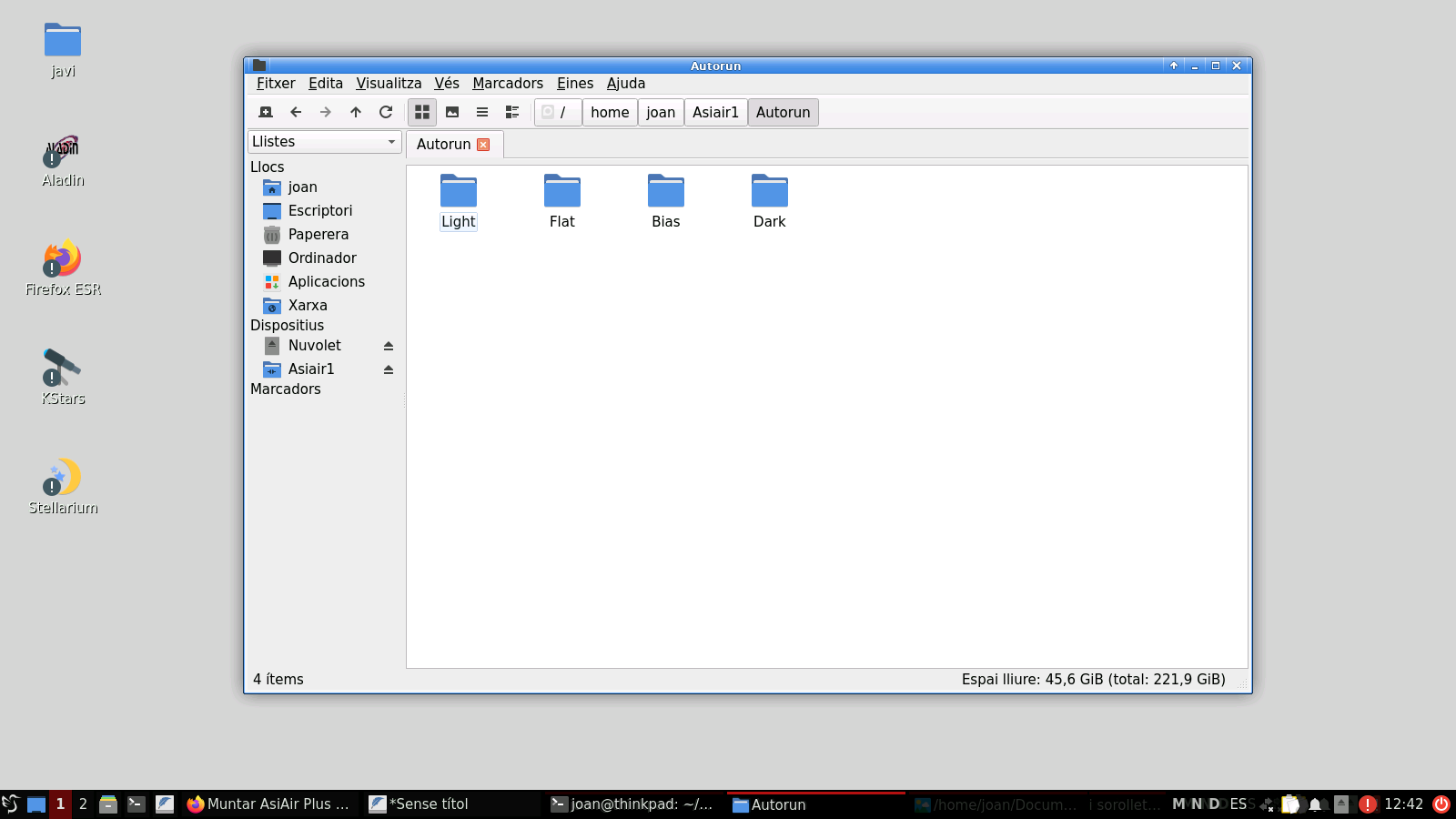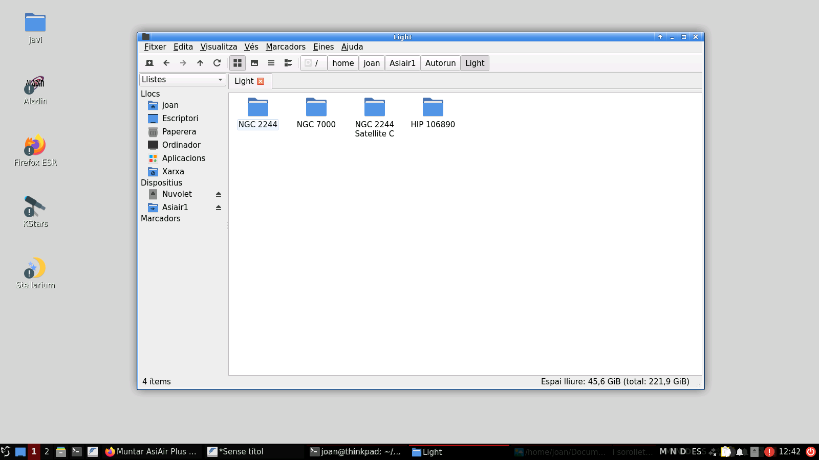 Ara podem accedir a la unitat des de l'ordinador i estarem veient les carpetes que hi ha a l'AsiAir que tenim al telescopi del terrat: