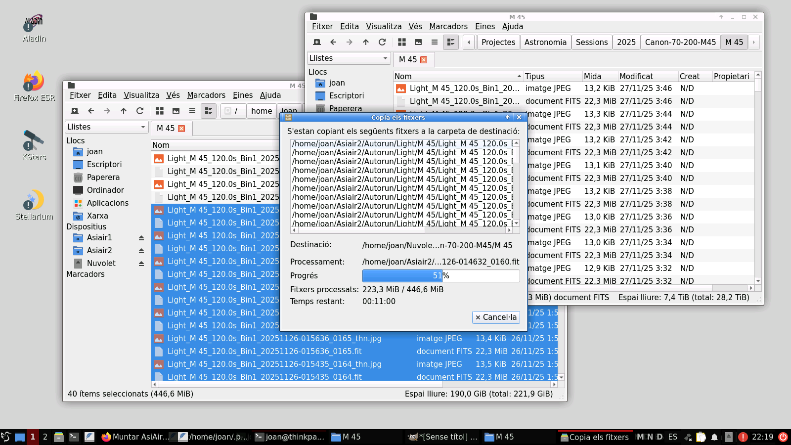 El que vull és aconseguir que tot siga com un gran sistema: a dalt els telescopis capturen llums de l'Univers, i a l'ordinador Debian tenir un directori que munte el disc dur de les AsiAir de manera que puga copiar-les des de la xarxa i treballar fàcilment amb PixInsight.
