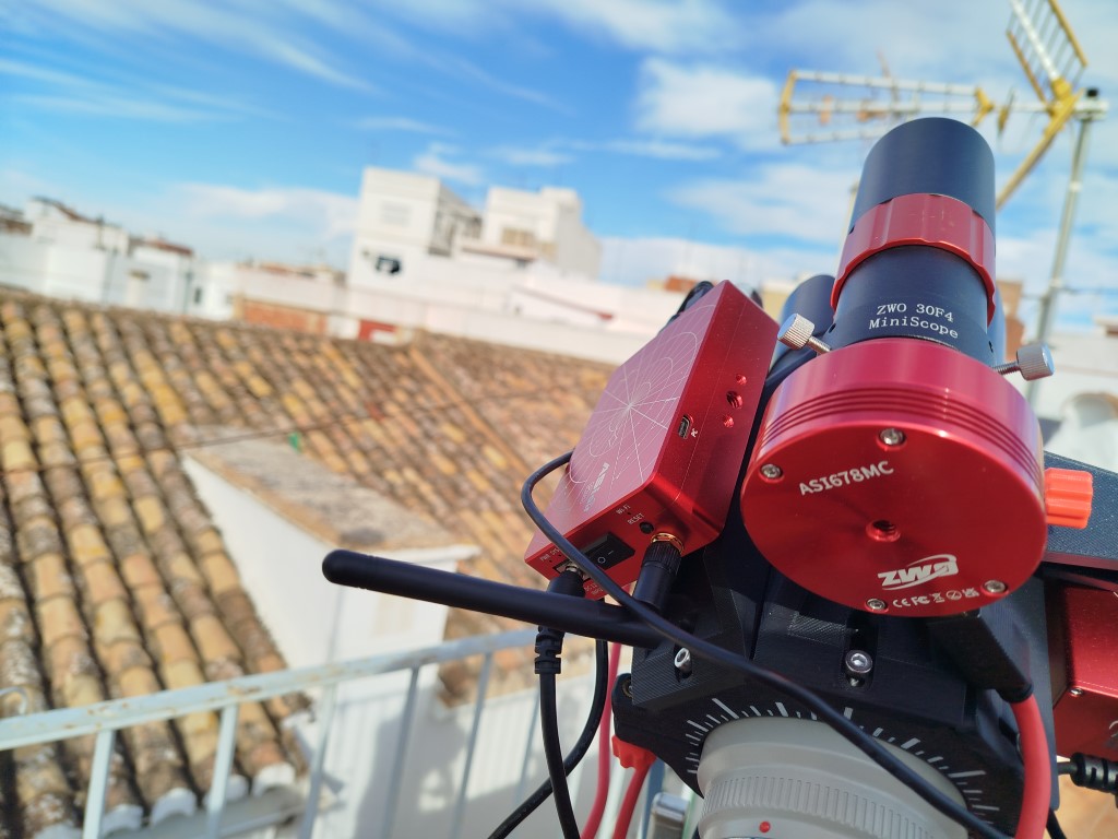 Per a poder fer-ho, el primer repte és tenir connectivitat entre el meu estudi d'es d'on jo treballe fins als telescopis, que estan en el terrat. Jo estic connectat a un router i els AsiAir emiteixen també la seua Wifi però em cal ficar un extensor de senyal en el mig de manera que faça de pasarel·la entre el router de l'estudi i les antenes de les AsiAir: